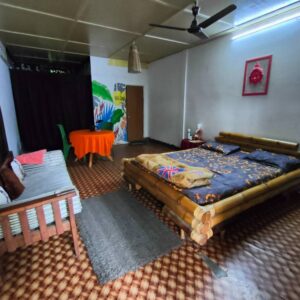 Spacious room with king-size bed, AC, LED TV with Tata Sky, and attached bathroom
